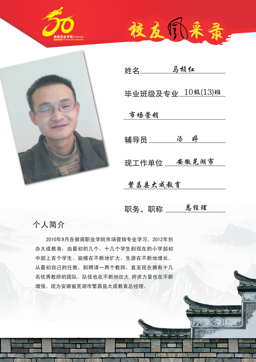 校友风采—10级(13)班市场营销 马帧红