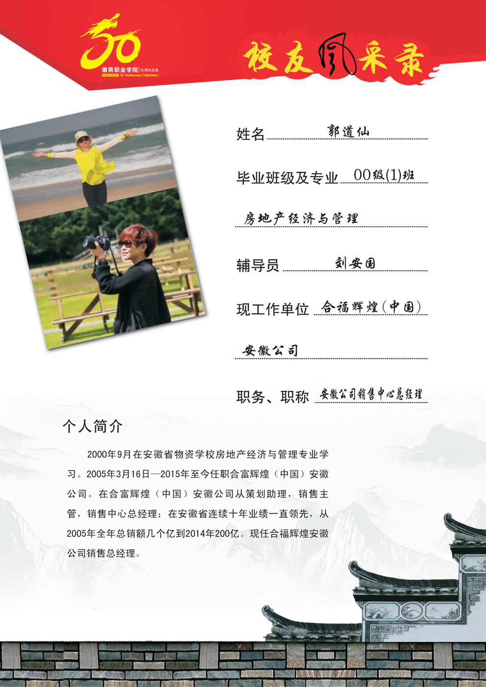 校友风采—00级(1)班房地产经济与管理 郭道仙