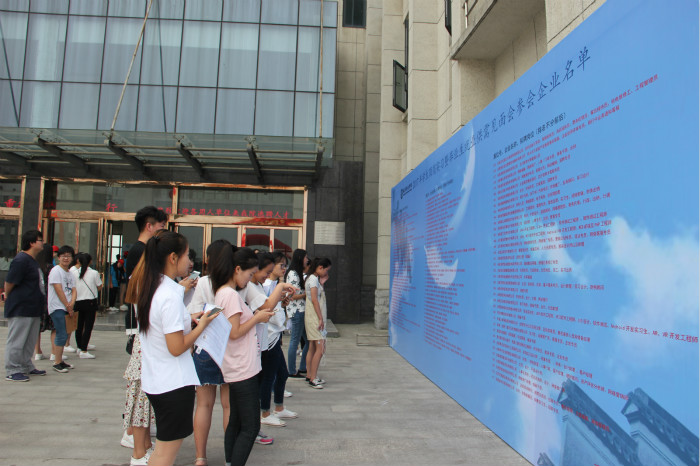 学院2017届毕业生、2015级顶岗实习学生近3000人参加了本次供需见面会。见面会现场人头攒动、气氛十分热烈。同学们通过图文信息中心广场前的大型展板了解到前来参加招聘的企业名单以及岗位需求等情况,并根据自身条件、专业方向以及求职意向,主动到各公司招聘展台前咨询岗位需求、薪资福利等详细情况。企业代表们纷纷抛出橄榄枝,招贤纳士,主动向同学们介绍公司概况、岗位需求等具体情况。不少企业与学生当场达成初步签约意向,双选共赢效果明显。
