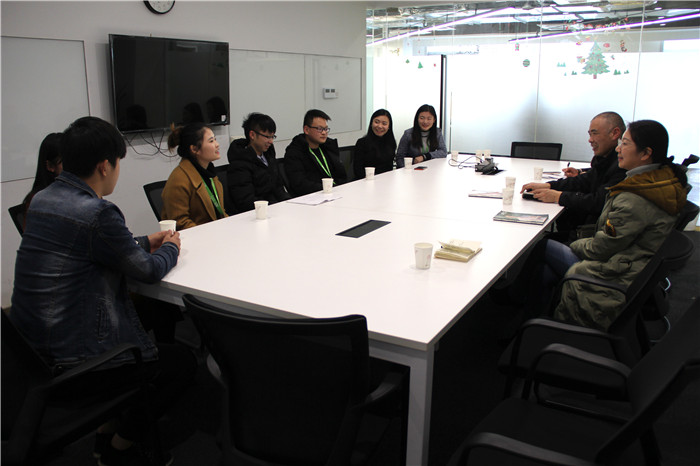 窦永林一行参观了该中心办公区域,随后与胡文静及顶岗实习学生们进行了交流座谈。我院2015级实习生高前程、尹亮、周帅、王东云、李剑飞等5名同学参加了座谈。同学们分享了目前的工作状态和心得感受,在谈到目前状况时,大家表示非常满意。窦永林表示,很高兴看到同学们在企业的快速成长,希望同学们再接再厉,增强工作能力,不断取得进步。